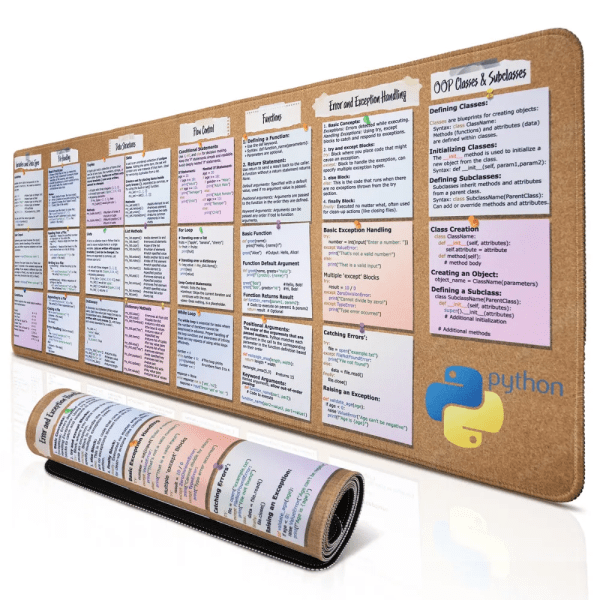 Upgrade your workspace and streamline your coding process with the Python Programming Cheat Sheet Desk Mat.